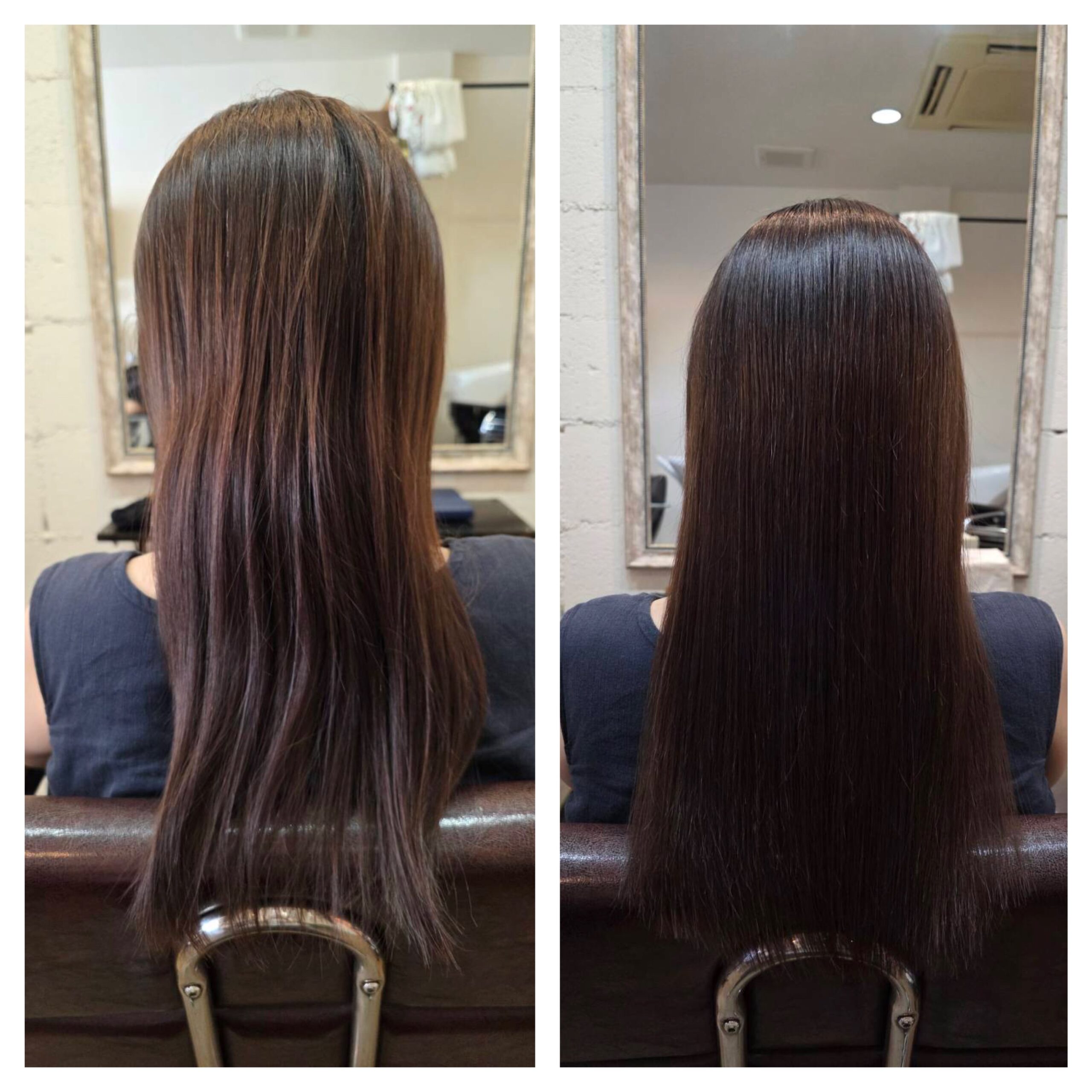 千葉店のストレートエステの施術実績 うねり、広がり、パサつきが気になる髪が扱いやすい艶髪になった事例をご紹介します。 dearschiba 2025年9月27日 当店のストレートと同時に髪に必要な栄養分を補給するストレートエステにてうねり、広がり、パサつきが気になる髪が扱いやすい艶髪になった事例をご紹介します。 メニュー ストレートエステ リタッチ 結果 クセが伸びまとまりがよくなり栄養の浸透と保湿効果で艶々さらさらになりました♪