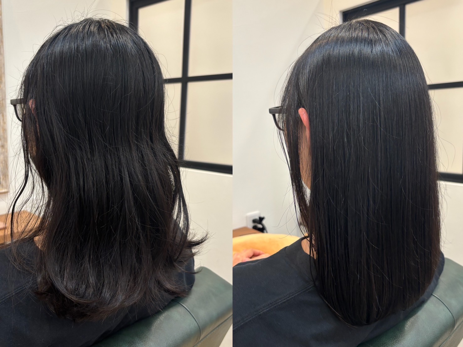 トリートメントエステを2回施術した後、安定した髪の状態でのストレートエステ。